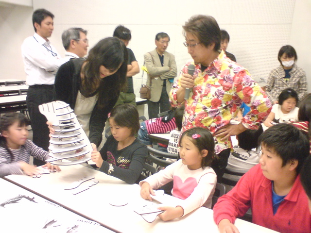 | ワークショップ「段ボールで動物をつくろう!」 2009年10月10日から12日までの3日間、第4回おおいた協働ものづくり展が大分市のアートプラザで開催され、12日にワークショップ「段ボールで動物をつくろう!」を本学非常勤講師の松岡勇樹氏(アキ工作社)と共同で実施しました。 著名なデザイナーである松岡勇樹先生が多忙な中、ボランティアで駆けつけて下さり、解説や実演をなさってくださいました。また、手伝いの学生たちも、とてもよく働いてくれました。関係者の皆さまのおかげで、ワークショップは大成功でした。 今回のイベントを体験したこどもたちが一人でも多く、ものづくりに興味をもち、将来、建築やデザインに関わる仕事に就いて社会で活躍してくれることを心から願っています。 NBU日本文理大学 工学部 建築学科のホームページにも掲載されているので、ご参照ください。 |